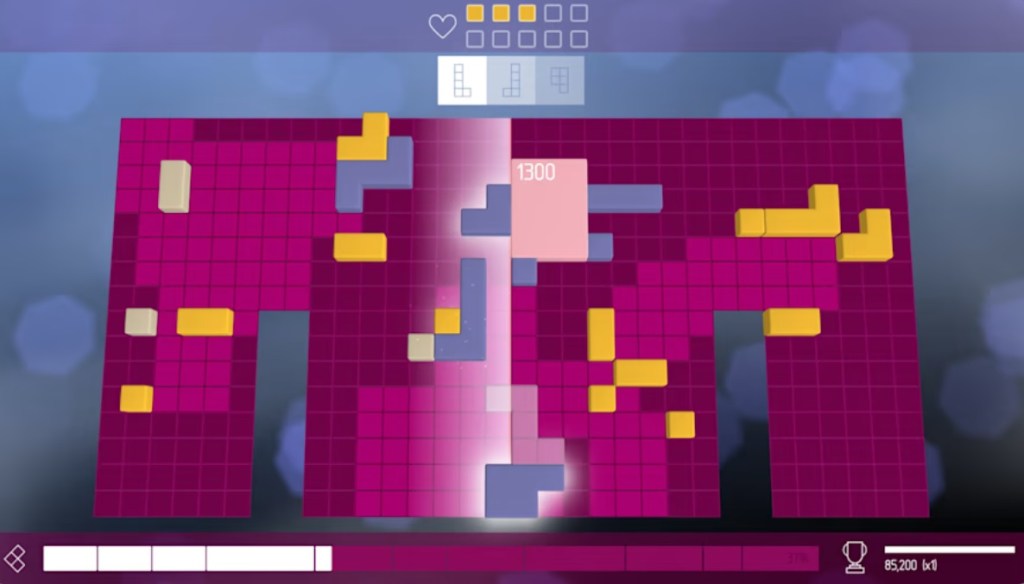 If the formula sounds familiar, it’s because it’s very similar to the Lumines series. However, while that was a “falling block” game where the challenge was making rectangles of the pieces’ two colors, here you’re placing the blocks anywhere you want on a field, making for a different sort of play experience. The result is a pretty mellow, soothing puzzle game experience, made even more pleasing by the game’s electronica music and pleasing color palette.