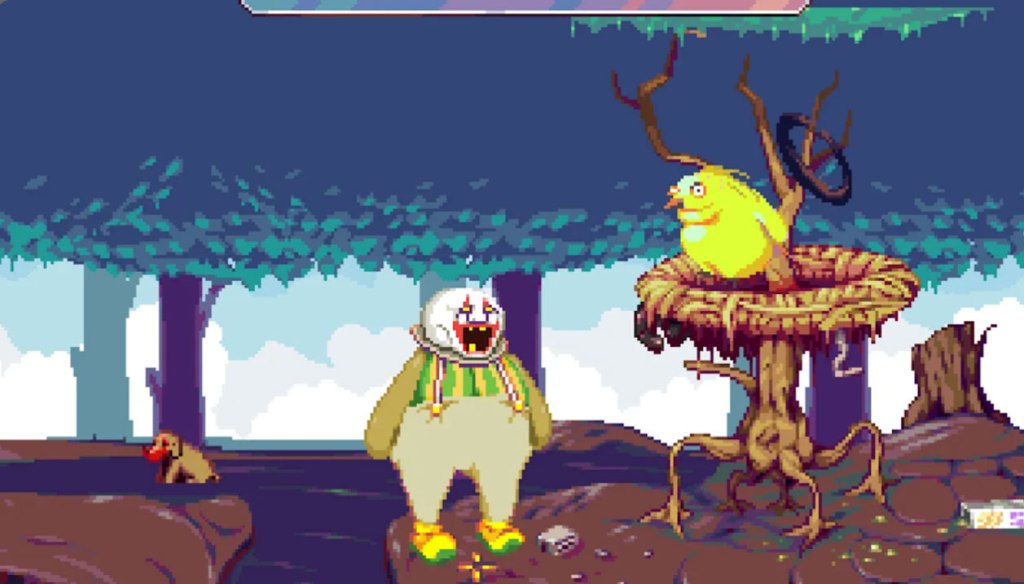I suppose, to the game’s credit, there’s some good animation here, even though the 2D art style and color palette can often look like something puked up by… well, by a clown. This is backed by an atmospheric soundtrack, and joined by a lot of mumbly noises as characters “speak”.
