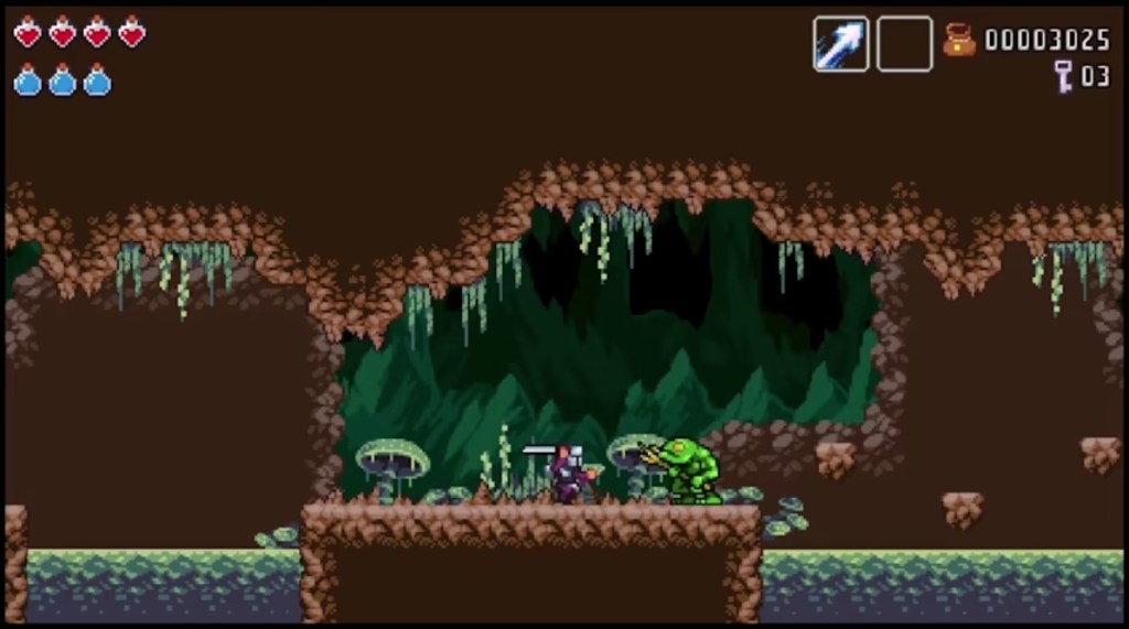 Unfortunately, the gameplay doesn’t do much to impress either. This is mostly a bog-standard Action-Platformer with slow, predictable enemies that will only pose a challenge if you’re careless. The game is split into stages that each have a secret chalice hidden away, though “hidden away” often just means “you’ll need to come back when you’ve unlocked an upgrade, and then it’s obvious how to get it”.