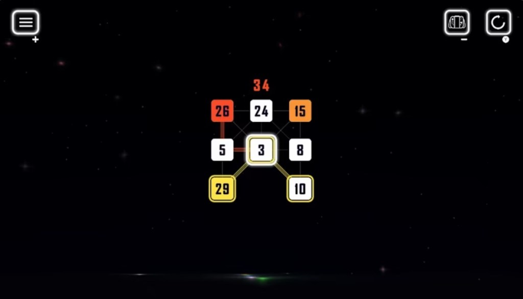 The presentation in this game is pretty simple, showing the numbers in a starry section of space, connected by colored pathways, backed by soothing music. It’s nothing especially interesting, but it works well enough. It’s just a shame the gameplay itself is even sleepier than this calming presentation.