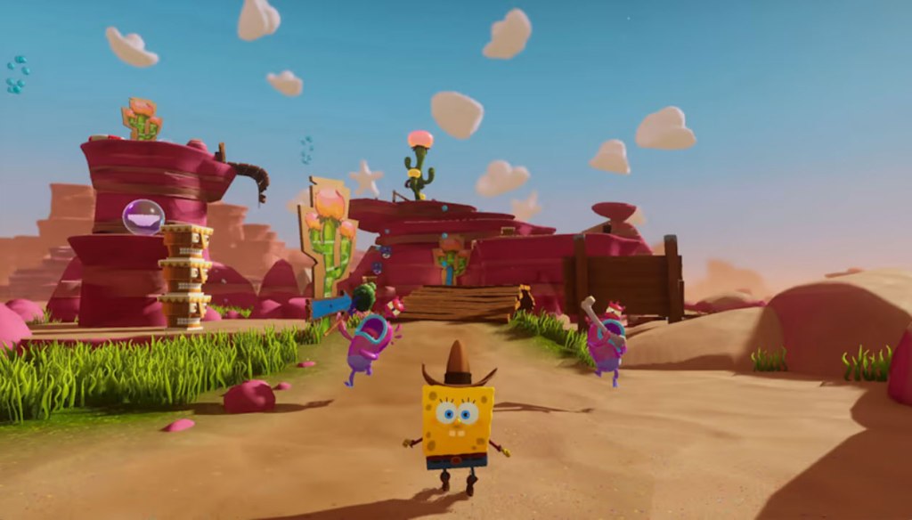 The sound is also once again spot-on here, with apparently all of the TV show’s voice cast reprising their roles here, and with some amusing writing too. This is all backed by music that takes its cues from the different themed worlds SpongeBob visits – Bikini Bottom itself has its usual ukelele music, but going to a Wild West-themed area gives you a distinctly Western-themed soundtrack, and so on. All in all, it’s pretty well done.