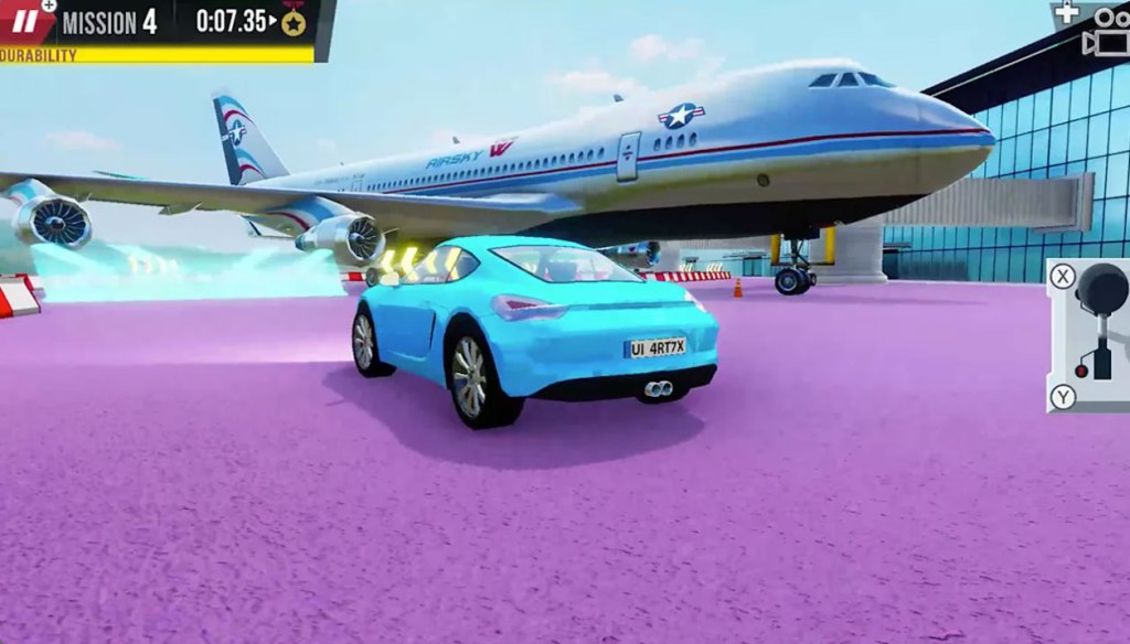 The presentation here is decent but unspectacular, with sufficient 3D visuals that get the job done, but not especially well. There’s plenty of nasty pop-in and repeated slowdown too, as well as some odd design choices like making some roads and even large stretches of airport runway bright purple. Weird. Even on the Nintendo Switch, Racing games have demonstrated they’re capable of much more than this. The sound here is sufficient enough at least, and having occasional noises of planes taking off is a nice touch. However, there’s no music to speak of.