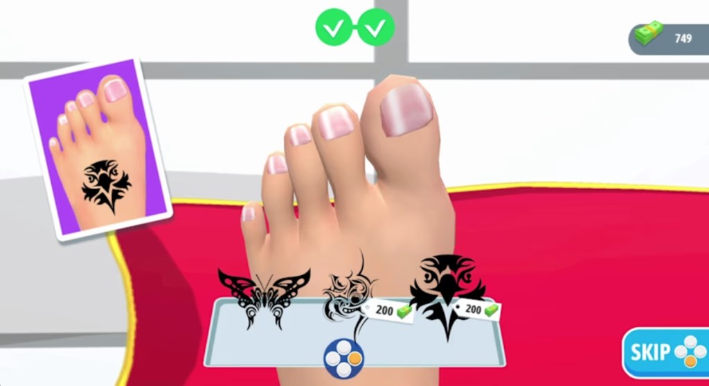 For the gameplay, you’ll largely just be moving a cursor around on the screen until you complete whatever task needs completing. The tool for each task will be automatically selected for you, and while you may be given choices for things like tattoo style or nail paint, you’re also told what the customer’s preference is, so you’re discouraged from being creative.