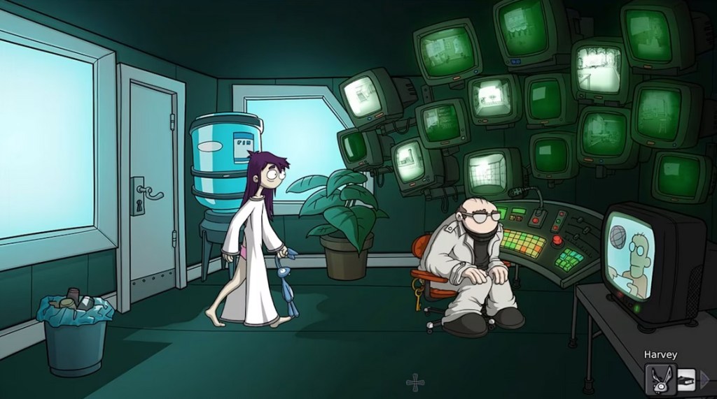As for what this game is about, players take the role of Edna, a purple-haired young woman who finds herself in a padded room in what appears to be a mental institution, and alternately at times they’ll switch to her companion Harvey, a blue stuffed bunny that trades banter with Edna. Together, and with assistance from others in the facility, the pair will try to escape while occasionally taking trips into Edna’s past to help her regain her memory.