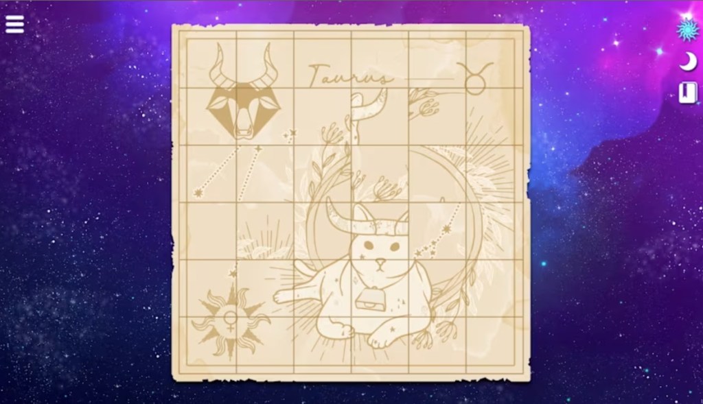 Zodiacats is a family-friendly Puzzle game released on PC in 2022 and ported to Nintendo Switch in 2023. This game has players swapping tiles in a simple puzzle to reveal its picture, with the game’s themes mixing cartoon cats and a new-agey zodiac theme.
