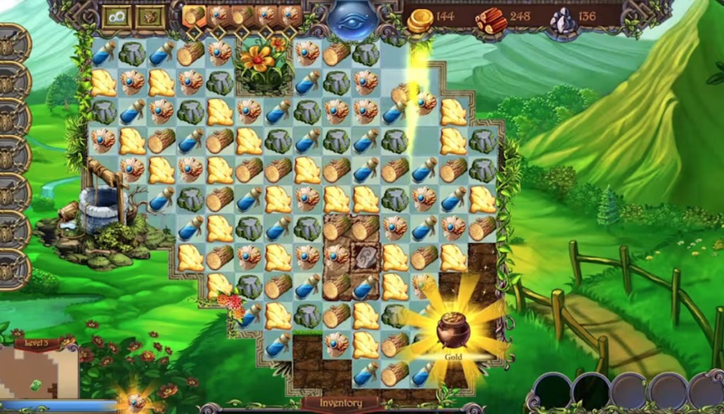 Runefall 2’s gameplay starts with the typical Bejeweled-style Match-3 formula, though it thankfully has more to offer than just this. The twist in this game is that players can only see a portion of the puzzle at a given time, and must make matches not only to clear away on-screen obstacles, but also to redirect the camera to new locations, working their way towards branching paths or points of interest in this manner. It’s a clever idea that the game puts to good use, challenging players not to clear each level, but to explore it.