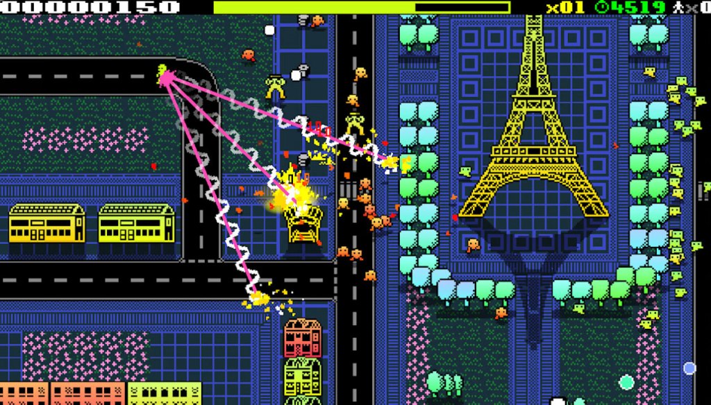 The presentation here is simple but not bad, with the visuals taking the form of 2D pixel art visuals with a lot of color but without much detail, which is probably for the best given the massive numbers of enemies that will be on-screen at any given time. This is backed by an energetic synthesized soundtrack that you will probably not be paying any attention to because you’ll be so focused on the action.