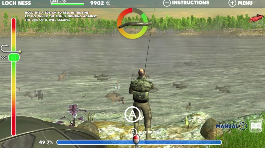 3D Arcade Fishing, released on Nintendo Switch in 2021 and ported to PlayStation 4 in 2024, is a Fishing game that largely strips the sport down to a single button-press – after you select a spot, tap A to toss out the line and press A in time with a bar to determine accuracy, then tap A again when a fish bites, holding A to reel the fish in, releasing it to give some slack on the line. There’s different equipment and bait to buy, but that really is the core gameplay in a nutshell.