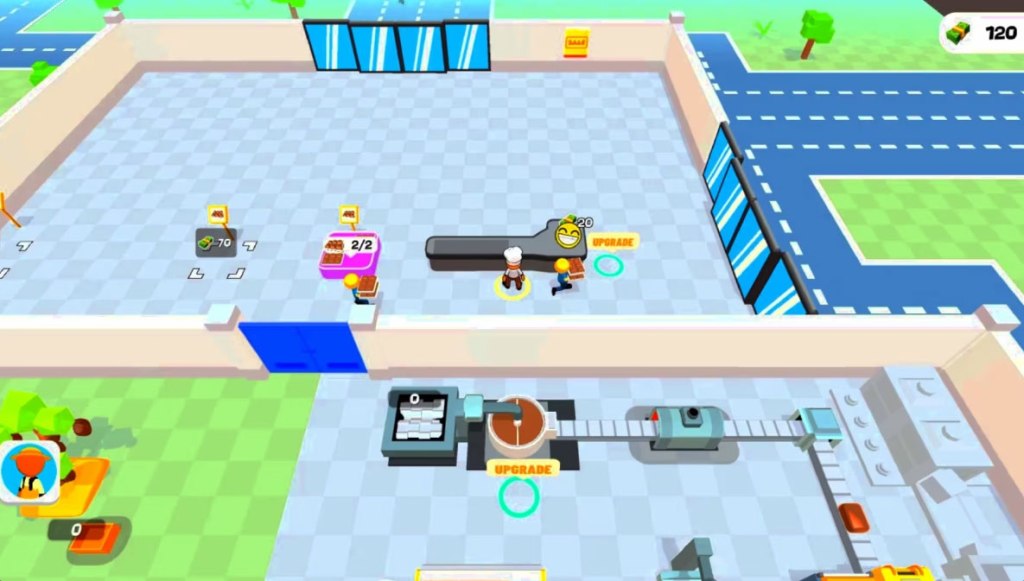 To its credit, the Idle Game gameplay does a mostly decent job both when it comes to basic interaction and providing players choices. Your little chef characters can (and to start, must) interact with every stage of the process – whacking trees to get cocoa beans, taking them to the conveyor belt, taking the processed chocolate from the conveyor to the sales counters in the chocolate shop, and manning the cash register to actually sell the chocolate and finally make some money.