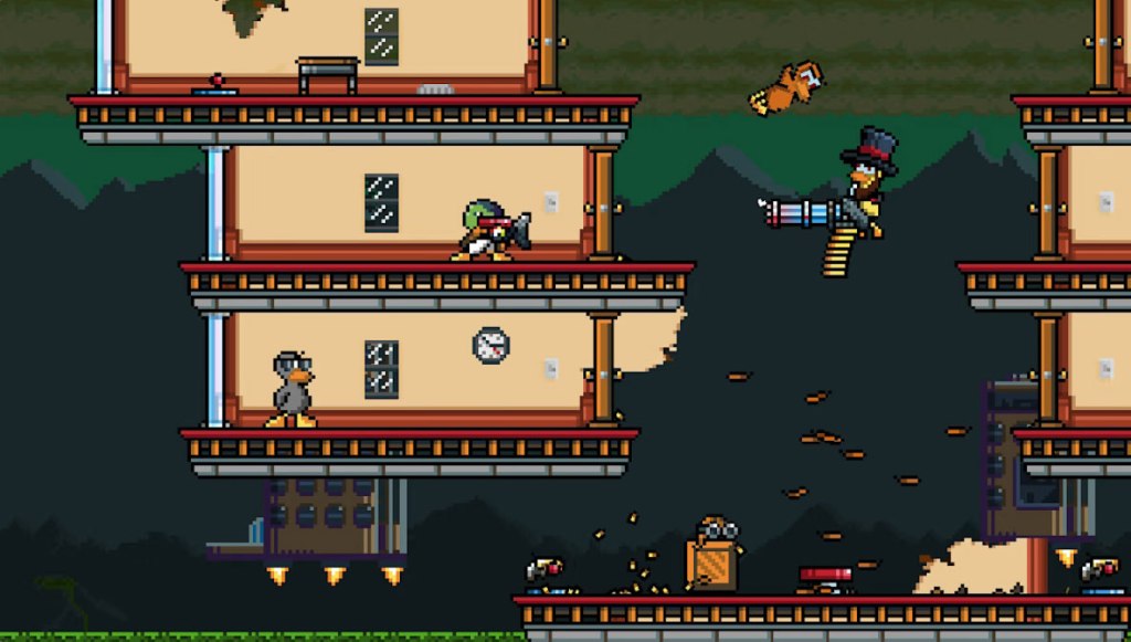 This game makes use of 2D pixel art visuals for the ducks and backgrounds with a style that seems a bit reminiscent of classic PC Platformers, with a theme-appropriate chiptune soundtrack. There’s nothing impressive here, but it all works well for a game that’s clearly focused on the action.