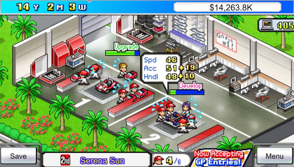 Beyond this issue, many of the other problems of Game Dev Story return here – you have very little in the way of options to expand your crew and build better vehicles, and the game drip-feeds these upgrades to you far too slowly. Most frustrating is the lack of more than a single racing team early into the game, as this limits your crew to only working on one project at any given time, forcing you to wait as they do.