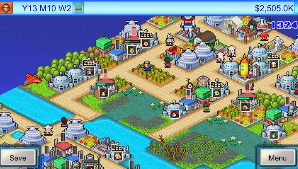 After their earlier games, Kairosoft had established a few templates for their Simulation games that later games would largely follow. Game Dev Story established a Simulation-style game more focused on managing employee time and focus, while Hot Springs Story established a Simulation style in line with Theme Park Simulators where you try to cater to guests’ tastes to maximize attendance and income.
