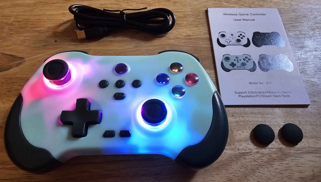 The full list is as follows: PC, Android devices, iOS, Nintendo Switch, PlayStation 4, PlayStation 3, Steam Deck, and Tesla. For the purposes of this review, I looked at the arVin Wireless Gamepad Controller primarily as a Nintendo Switch controller, but I did also test it out with a PC, an Android smartphone, and a PlayStation 4. I’ll talk about how that went in a bit.