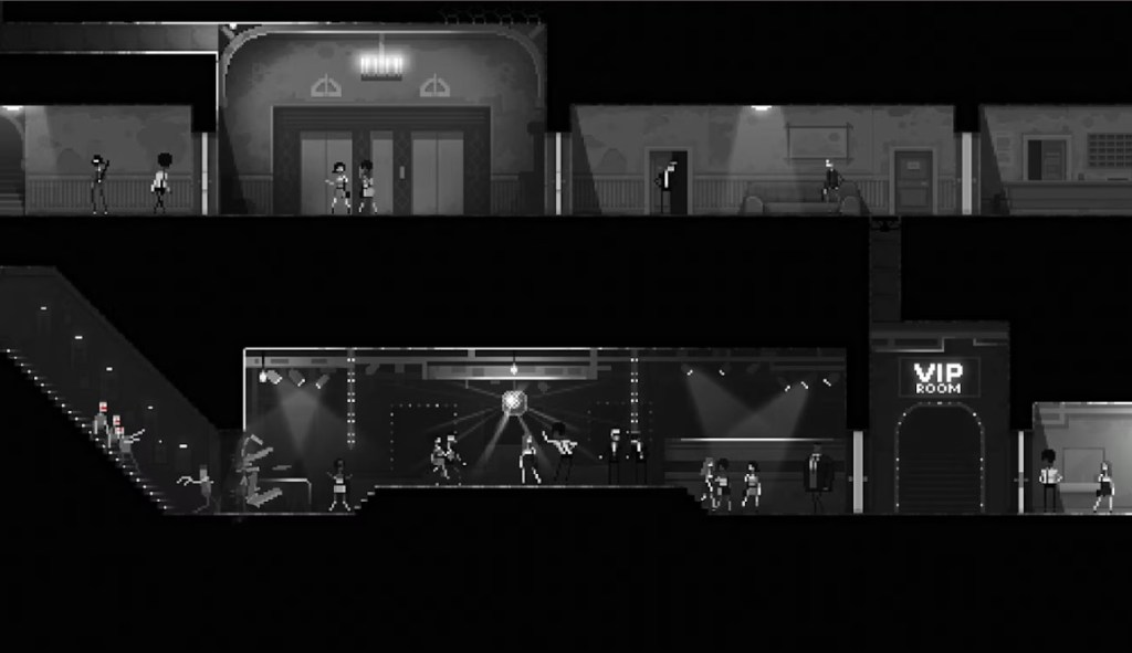 The presentation in this game is outstanding. The visuals consist of tiny 2D pixel art graphics with excellent animation, all rendered in a mostly black and white style aiming for a “classic B-movie” feel, while highlighting important points of interest in either green or red, depending on what it is. These excellent visuals are paired with a delightfully dramatic soundtrack, characters voiced in a Simlish-esque gibberish-speak, and plenty of screaming. In short, this game’s presentation had me smiling from ear to ear the entire time.