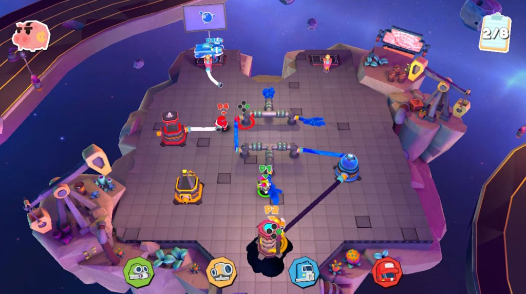 All of this so far is honestly great, it’s what I look for in co-op games like this, but there are a few things that take it down a notch. First, this game is really finicky about which hose you’re picking up or swapping in, especially if there are multiple hoses close to each other (which happens frequently). It can be extremely frustrating to try to connect one hose to an open port only to find you’ve swapped it in for a nearby port, a hose you needed to remain in place.