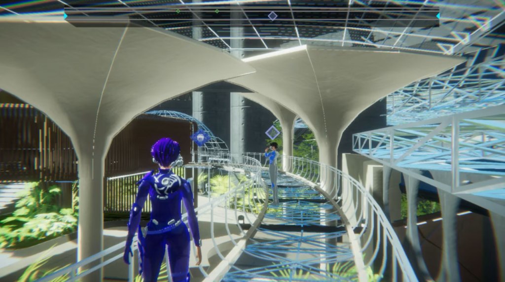 The game’s world is realized through some highly imaginative 3D visuals that combine sterile futuristic environments, simplified contemporary environments, abstract dreamworld-like transitions, and characters that seem vaguely anime-styled. I do feel like these visuals are a bit lacking in a few places, though – characters’ mouths don’t move while they’re talking, making conversations look odd. Also, there is an absolutely nasty amount of aliasing going on here, and some bad framerate drops, though thankfully these have little effect on the gameplay..