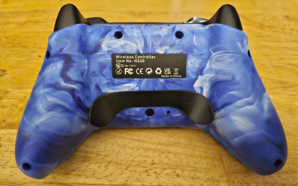 Flipping the controller over, you find on center-bottom a button to adjust the controller’s lighting, and then just above it a pair of paddles to act as macro buttons… at least in theory. In practice, I could not get these to work, with the instructions to reassign these buttons resulting in the controller blinking a few times and then nothing happening.