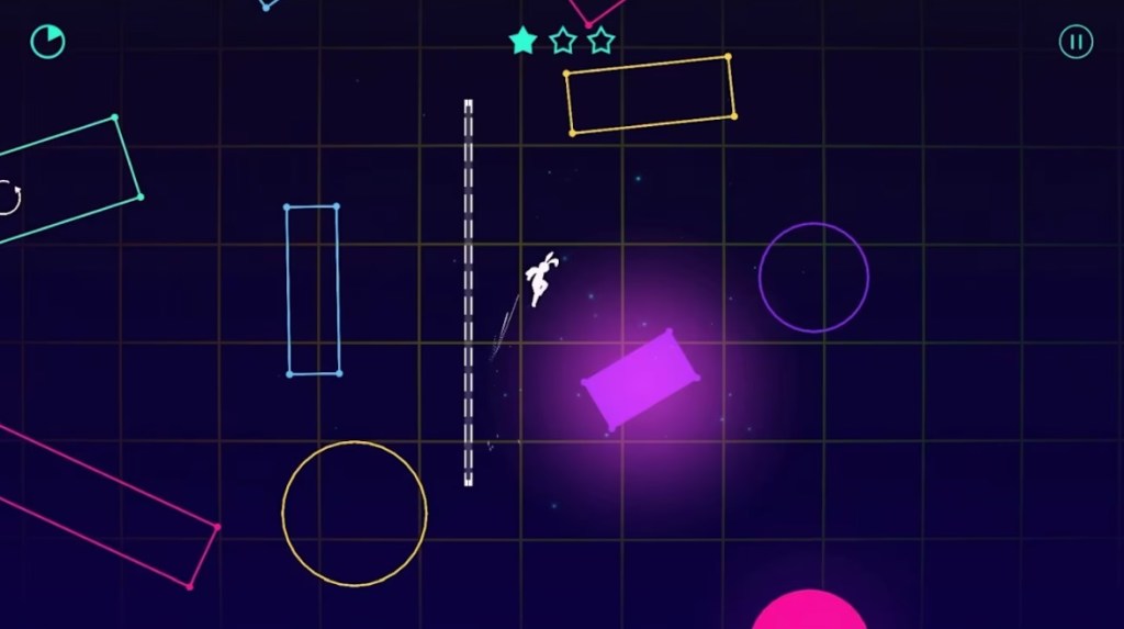 The presentation here is simple but appealing, with a dark background and bright colors for the shapes that glow like they’re filled with neon, and with your character being a simple stick figure. This is all backed by a dreamy, synthesized atmospheric soundtrack that places the focus on the gameplay. Overall, there’s nothing impressive here, but it all works, and has a clean, appealing look.