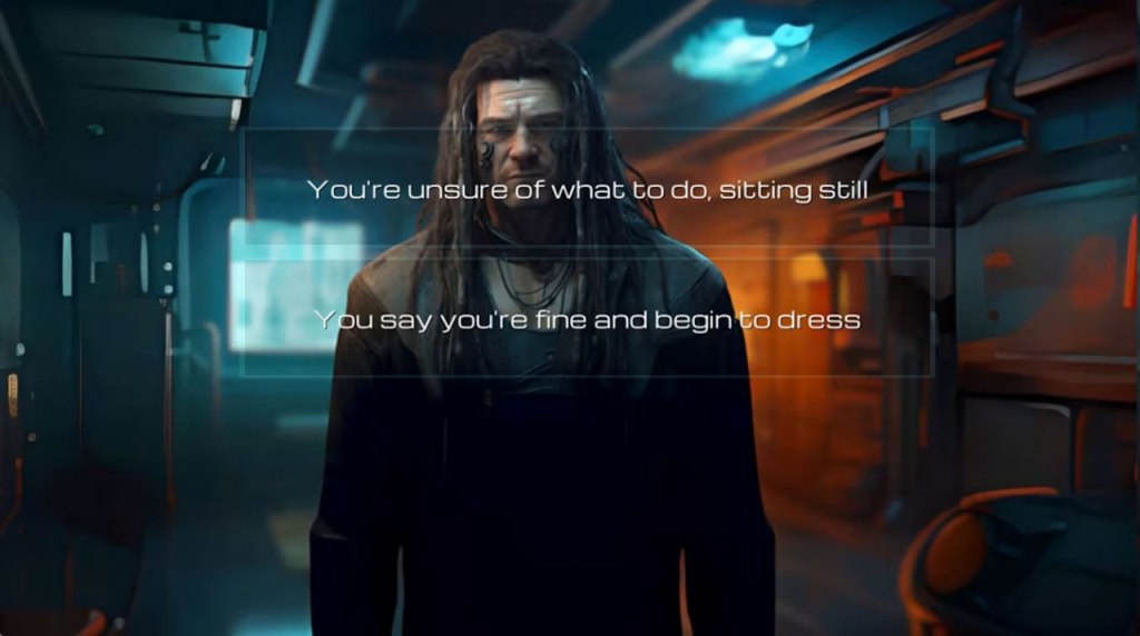 I suppose at least the presentation isn’t horrible, with an atmospheric subdued minimalist soundtrack and detailed and at times almost photographic images for characters… but it seems pretty clear that these images were created with an AI algorithm, which not only means I can’t give this game’s creators too much credit here, but the images often don’t reflect the scenes being described in the text.