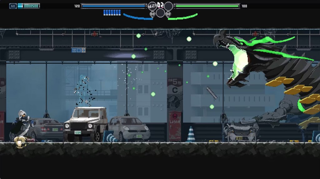 To its credit, Blade Chimera has a solid presentation, with detailed and well-animated 2D pixel art visuals (with occasional use of 3D) that seem reminiscent of the Castlevania series, while having its own distinct style with the odd juxtaposition of kooky Japanese spirits within a futuristic world. This is backed by a decent synthesized soundtrack that I think does a decent job mixing its futuristic and spiritual themes, though I don’t have any examples I can share at this time.