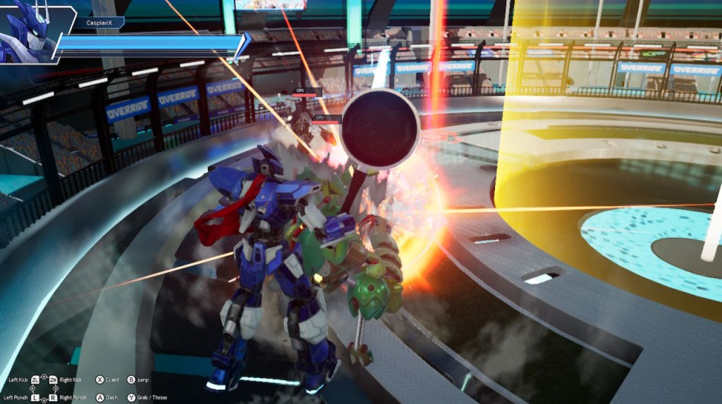 tl;dr – Override 2 is a game that combines Fighting Game and Arcade-style action with players fighting each other as mechs in enclosed arenas. While the gameplay is enjoyable in a shallow way, the performance on Nintendo Switch is atrocious, the camera is horrible, and the online play this game wants to highlight is a ghost town. The result is a game that’s very difficult to recommend.