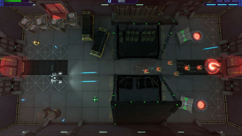 Apart from all of those issues, Mech Rage is a pretty mediocre 2-Stick Shooter, with an emphasis on rooms with force fields and switches you need to hit to deactivate them. There’s just nothing interesting going on here, and that’s after you excuse the constant stream of groan-worthy text, the atrociously bad loading times, and the tedious bullet sponge enemies. If you’re looking for a decent 2-Stick Shooter, do not buy this game, because you won’t find one here.