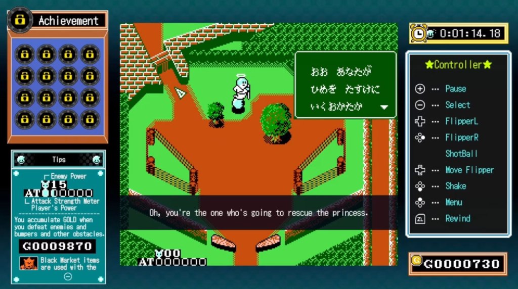 Despite that Pinball Quest wasn’t exactly a megahit release when it first came out, the Nintendo Switch version of the game has gotten a lot of love. This release comes with both the US and Japanese versions of the game, a huge gallery of box art, instruction manual art, and promo art, a timed challenge and achievements to pursue, a quick save feature, a rewind feature, display and control options, and a frame that includes helpful gameplay info. This is far more than I would have expected for such a niche game.