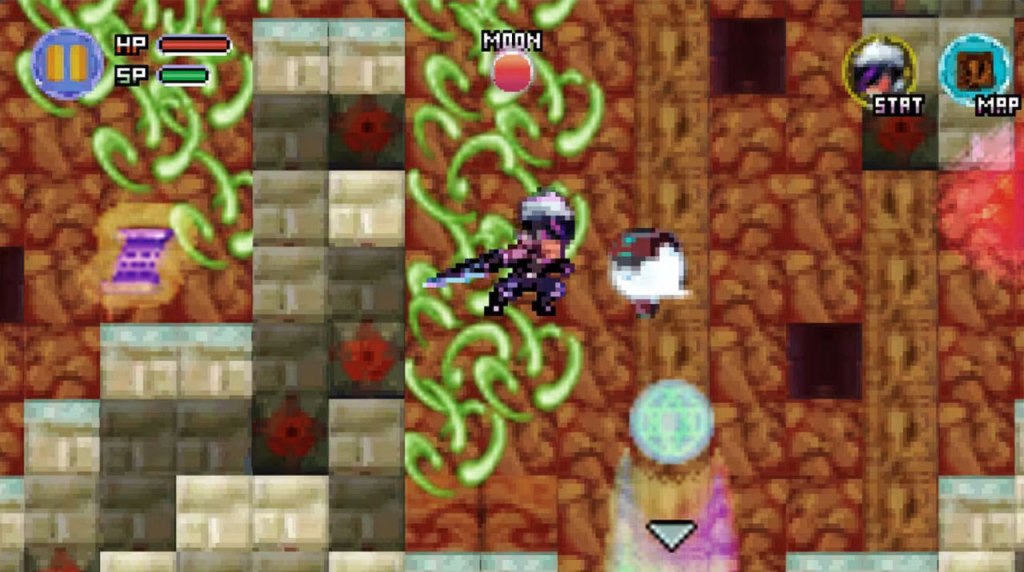 Which is to say, it often doesn’t work. At one point, the camera got stuck against the far wall and refused to scroll away from it even as my character left the screen. At another point a boss got stuck on the floor facing away from me, making it easy to just wail away at him until I won. Then I got a key I was told would open every door in the dungeon, only to immediately encounter a door it wouldn’t open.
