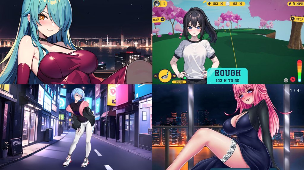 Hentai Games Collection, released on Nintendo Switch in 2024, is a Compilation containing four games, released separately on Nintendo Switch in 2023. All four games included feature artwork of well-endowed anime-style girls in various states of undress, including toplessness in three of them.