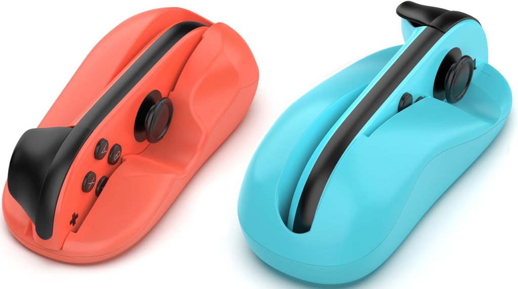 The Huijutchen Gaming Controller Mouse, despite the name, is not a mouse but a pair of grips for the Nintendo Joy-Con 2 Controllers designed to make play more comfortable and natural when playing in mouse mode. Players slot the Joy-Con 2 Controllers into these grips which rest inside, making a shape that is intended to be more like a traditional mouse.