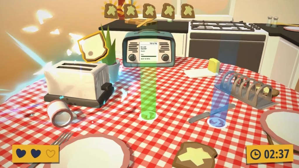 Making things worse is that the game doesn’t give any guidance on what you’re expected to you. Making eggs and bacon? You’ll waste a lot of time trying to figure out just how you’re supposed to crack the eggs. And while you’re figuring it out, a stingy clock is ticking down, and you may well be dealing with other hazards keeping you from performing your task, like a sniper who apparently hates breakfast for some reason.