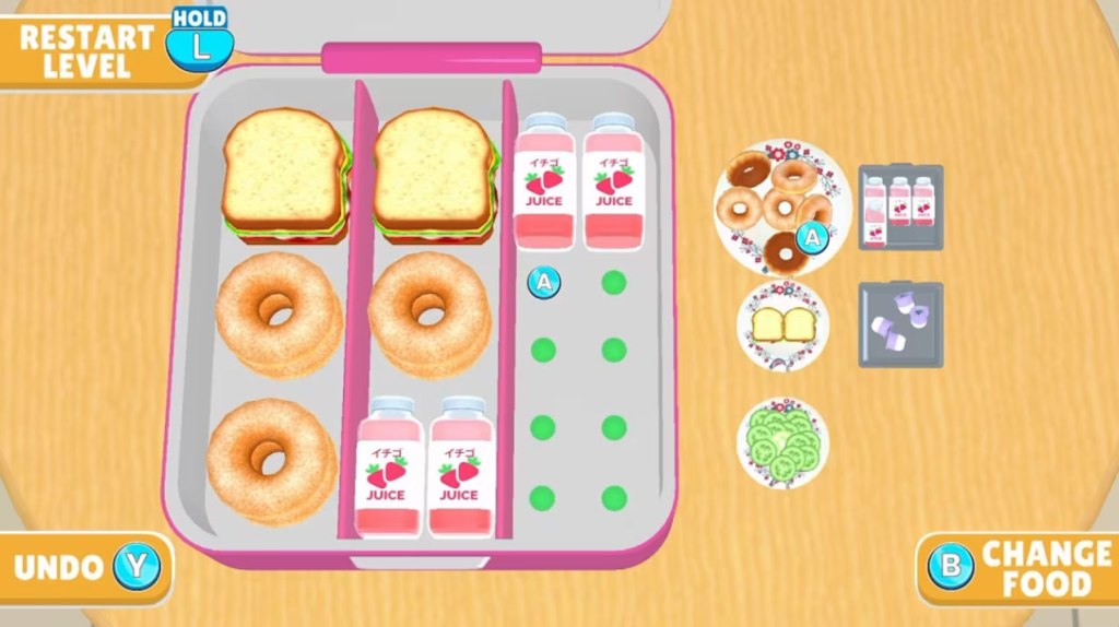 Lunch Box Ready, released on mobile devices in 2022 and ported to Nintendo Switch in 2024, is a game where players organize lunch boxes for an endless line of… customers, I guess? I don’t know that “lunch box organization” is an actual job, but this game seems to treat it as one.