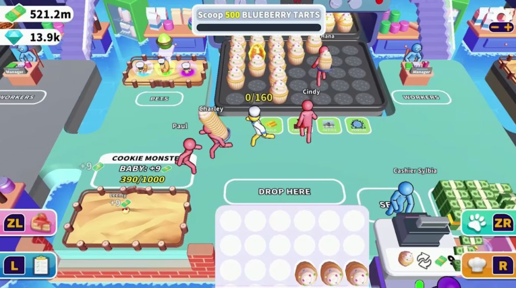 Even with this being the case, this task gets to be repetitive, which is why you’ll want to hire workers to make things go more quickly, and purchase upgrades for them to make them more effective. Other upgrades include helper pets and “cookie monsters” that slowly give you free money over time (to be clear, this isn’t the Cookie Monster, but just a generic monster of the cookie variety). You can also buy well as access to areas farther to the right, with each successive area being more costly, but featuring a more lucrative dessert to sell. The workers are what makes this an Idle Game, as they will continually collect resources for you even if you do nothing.