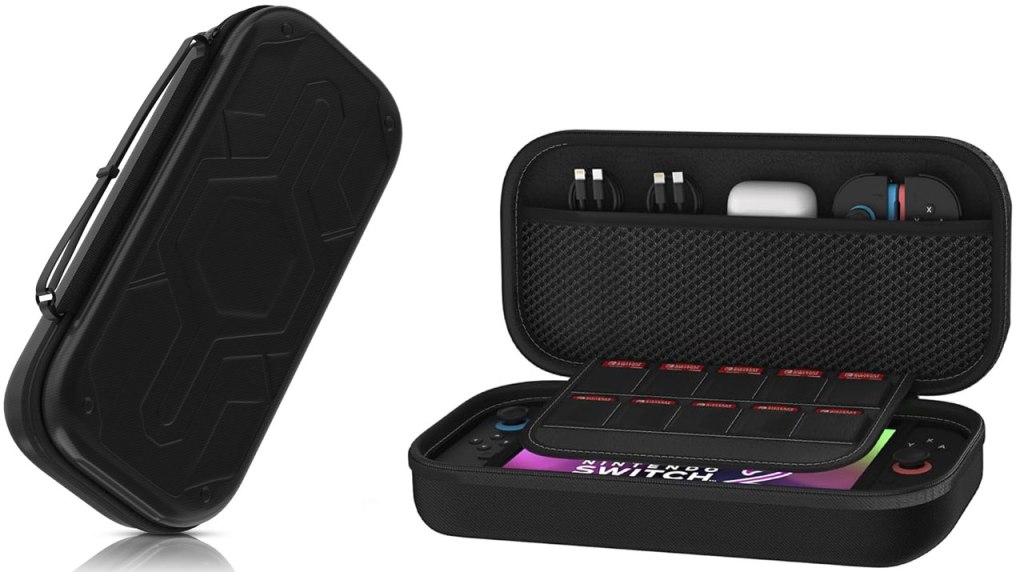 The Fundiary Carrying Travel Case is a mid-sized carrying case for the Nintendo Switch 2, big enough to hold the console, 10 games, and a few small accessories, but not big enough to contain a dock, a Pro-style controller, or anything like that.