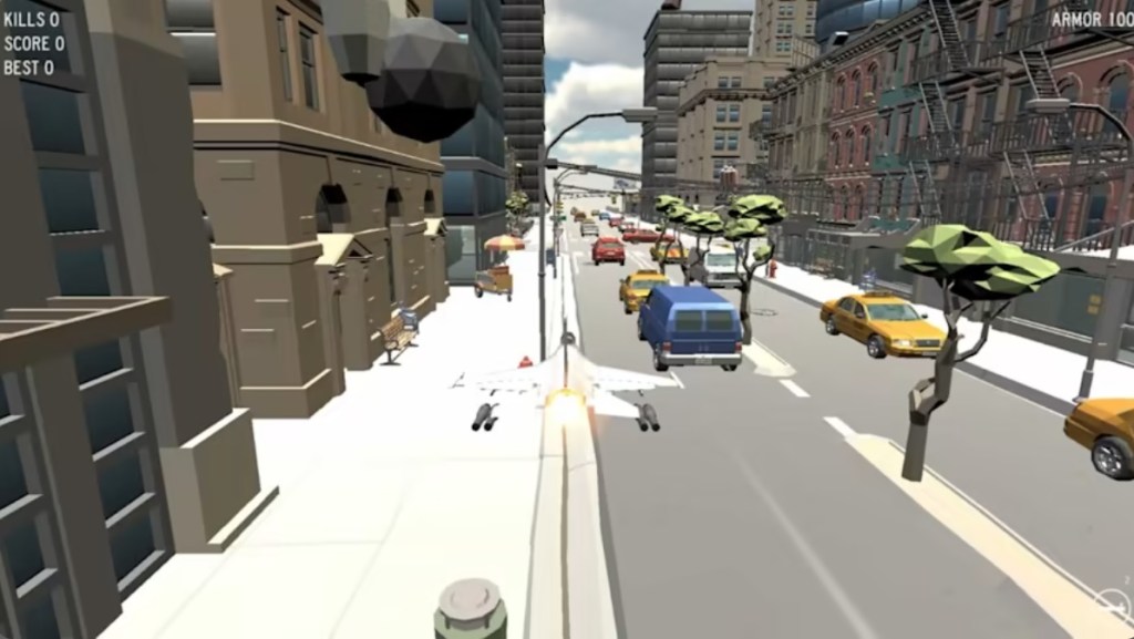 The main problems in this game are from the camera and the overall game structure. Players have multiple options for camera angles, but the majority of them are bad. By default, you’ll be using a view from above and behind your aircraft, which doesn’t give a good sense of how far you are from objects beneath you, making it easy to accidentally crash into the ground. Only one of the game modes here offers a first-person view where you can see where you’re shooting, and none of the game modes offer an unobstructed first-person view.