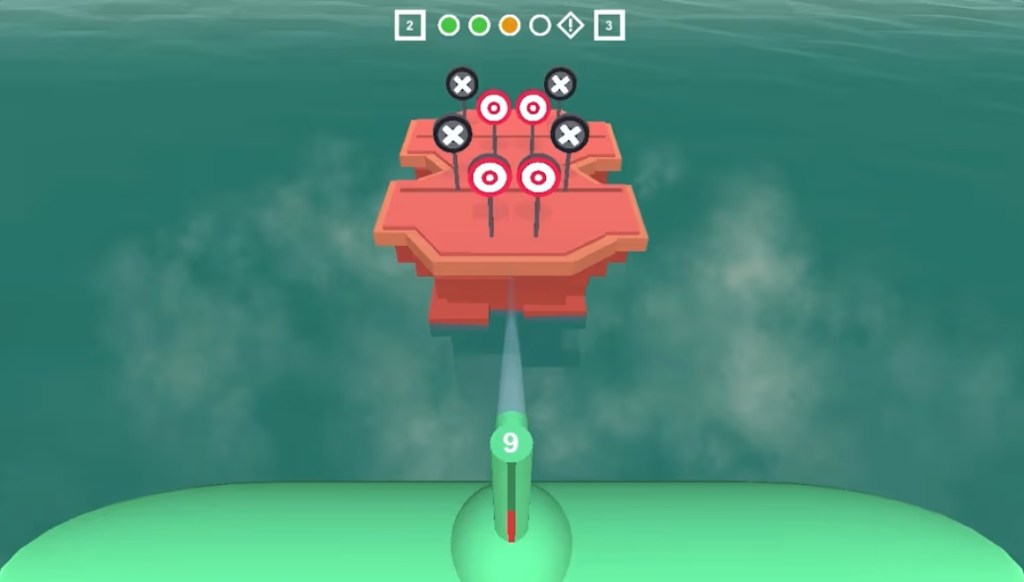 The gameplay here is absolutely brain-dead. Aim left, aim right, fire. Hit the targets, don’t hit the X signs. There’s no timer, and if you hit an X and fail you can just continue where you left off and try again. And if the simple gameplay wasn’t bad enough, the game’s levels seem to be randomized in a way where they frequently repeat, meaning that you don’t get a smooth challenge progression and you’re not even assured of getting something new when you complete a level.