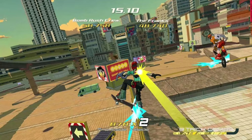 Bomb Rush Cyberfunk, released in 2023 on PC, PlayStation 4, Xbox One, and Nintendo Switch, combines Extreme Sports-style gameplay with Action-RPG elements and wears its Sega-created inspiration on its sleeve, both in its gameplay, its attitude and spirit, and its presentation.