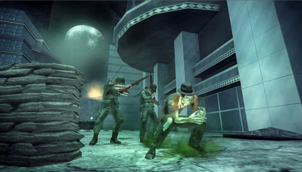 The gameplay in Stubbs the Zombie generally has players attacking humans then biting them to add them to their zombie army. This army will stumble around, attacking humans that get in range and turning them as well. However, without your intervention, this is aimless and slow. With your intervention it’s still slow, and while you can get these guys to follow you, it feels like you have to babysit them to get them to do anything. Ultimately, the zombie horde you create is far more useful at attracting gunfire from enemies so you can go on with taking the enemies out yourself.