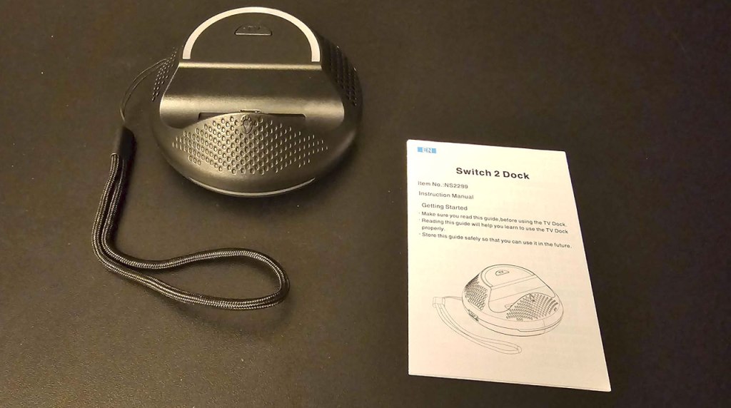 The first thing you should know about the Ejgame Portable TV Docking Station is that it comes bare-bones. There’s no Nintendo Switch 2 AC adapter, no HDMI cable, or any other sorts of cables. It’s just the dock itself with attached carrying strap and a small instruction manual. This means that you’ll need to provide your own AC adapter and cables to use it. The good news is, if you got a Nintendo Switch 2, you already have all of this – it came in the box with the console. However, if you’re looking at this as a secondary dock, you’ll have to pay extra. Just for Nintendo’s AC Adapter alone, that means adding an extra $35 to the price tag. However, even adding on this price still leaves Ejgame’s dock well under the price of Nintendo’s dock.