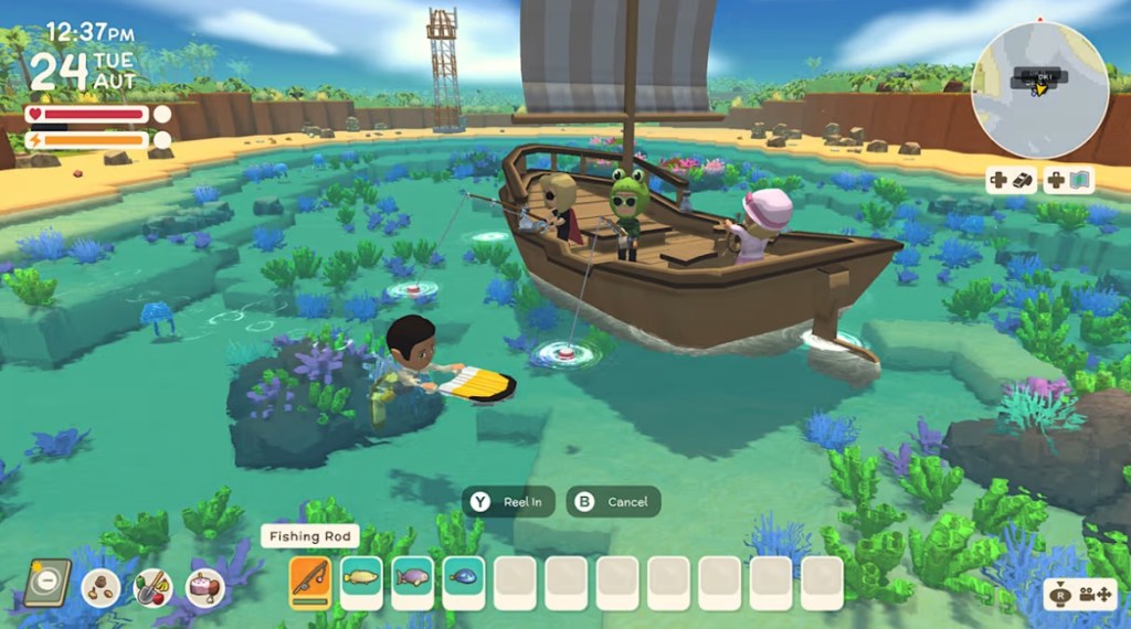 When it comes to the gameplay, you have the land deformation of Minecraft, though you have less freedom to do so here and it’s more tedious since you need to individually pick up and put down each block of dirt you dig. You have a decent selection of activities to partake in, like farming and fishing, though these come with their own frustrations.