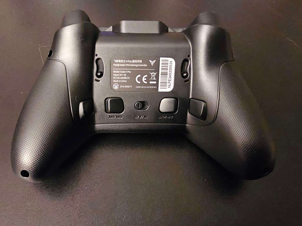 Like many of the Pro-style controllers released for Nintendo Switch, the Flydigi Vader 4 controller replicates the general size, shape, and layout of Nintendo’s own Nintendo Switch Pro Controller, with asymmetrical analog sticks with a concave top, along with standard face buttons and D-Pad in the usual places. The backside of the grips are nicely textured, as are sections of the L, R, ZL, and ZR buttons on top of the controller.