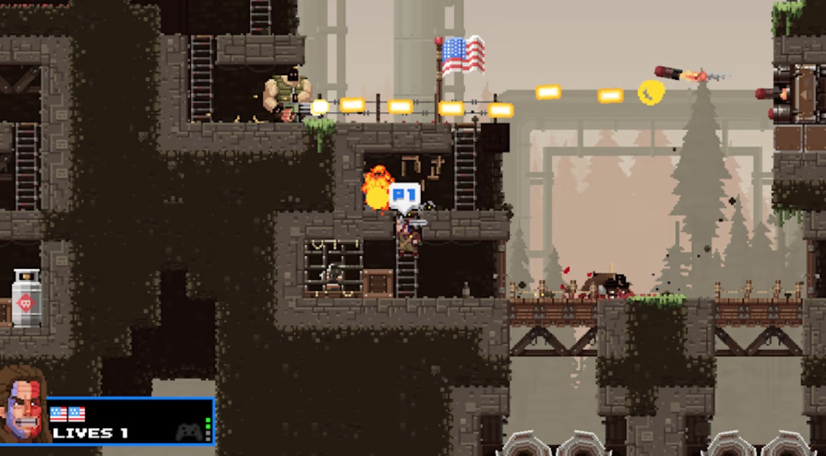 tl;dr – Broforce is an action-platformer that pumps up testosterone-fueled shooting action to parody level, with lots of characters that are amazing parodies of classic action film heroes. It’s just frustrating that you’re never allowed to choose which hero you’re playing as.