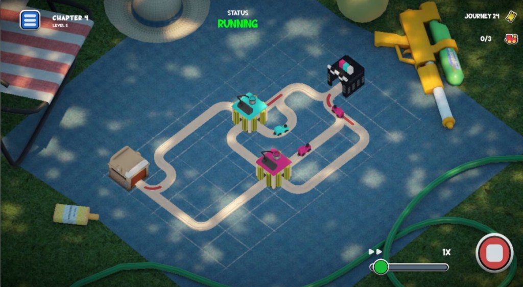 The button that players press once they’re ready to let loose the trains and try out the puzzle is essentially a start/stop button, and when you’re using gamepad controls, there’s zero delay between the two functions. This means that if you press this button for a second, the game will cycle through multiple on/off cycles of start and stop, and pressing this button with anything more than a feather’s touch will result in a coin flip of whichever state it ends up being in when you lift your finger off of the button again. This takes an otherwise fun puzzle game and makes it unnecessarily frustrating and tedious.
