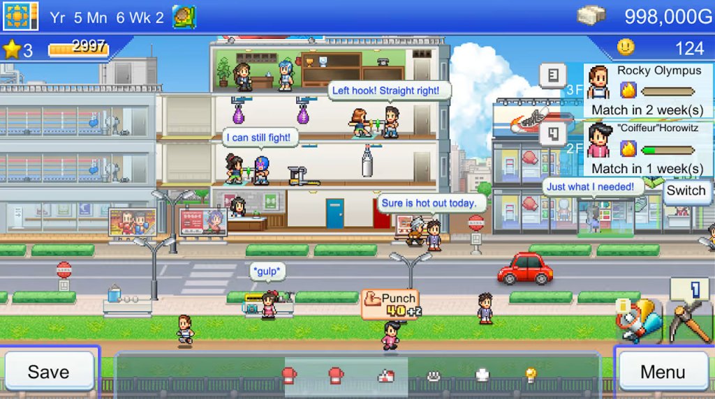 tl;dr – Boxing Gym Story is a Management Simulation where players manage the training of fighters while also building up a gym to make money. This won’t satisfy players looking for an in-depth Sports Simulation title, and even within Kairosoft’s standard formula this game is mediocre, offering players far too few choices to feel truly engaging. Unless you’re a fan of this style of game who really enjoys Boxing, this is a game to skip.