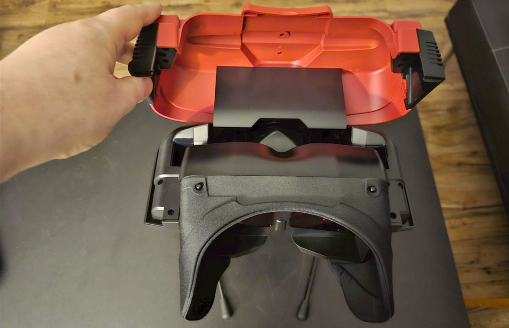 Of course, the Virtual Boy replica doesn’t work without a Nintendo Switch or Nintendo Switch 2, and to insert one of these consoles you’ll open up a flip-top lid to reveal a slot inside for the console (without Joy-Cons, which won’t fit). Upon putting the console inside, you can opt to close up the unit again, but it’s snug enough that there’s no need for this – if you want you can leave it open while playing it, to swap out a game cartridge, access the console’s volume controls, and so on.