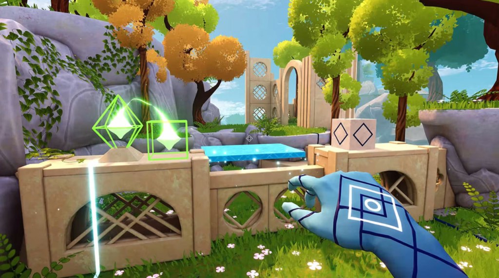 When it comes to the puzzles themselves, where the Portal series had its titular portals as its signature mechanic, and The Talos Principle had line-of-sight lasers, Tobla’s central mechanic is the ability to swap two objects within line of sight. This can’t work with scenery or decoration, but broadly speaking there’s a variety of cubes, spheres, blocks, and a few other things that you can swap places of, and you must use this to get past obstacles and power the gate leading out of each level.