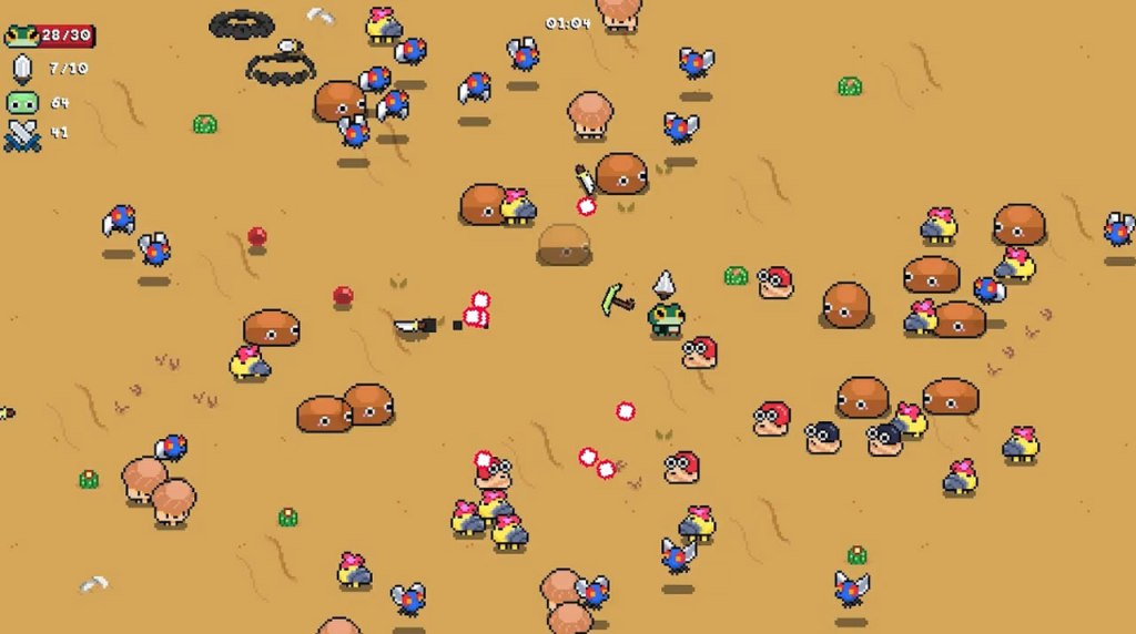 However, the other unfortunate problem with Dagger Froggy is a terrible lack of content. There are only four “maps” whose only difference other than the background image used is the enemies you face… and many of these seem to be merely palette swaps of each other. I suppose you could argue that this game is only $5, but… well, so is Vampire Survivors, and that game is absolutely loaded with content.