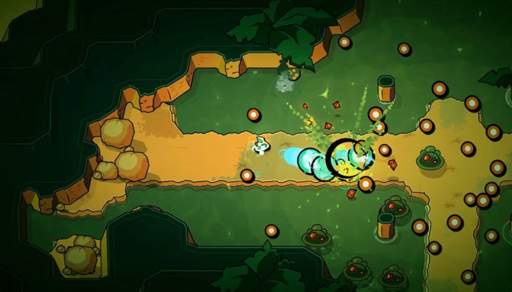 Some of these new abilities are quite clever, and play on the fact that you’re flying around a little ship and not running around as a little guy with a sword – for example, a dash ability is used with ramps to jump over chasms, and instead of bombs you get an upgrade that briefly boosts the power output of your main weapon with enough force to break stronger obstacles and walls. These elements all work very harmoniously together, making for a really compelling gameplay loop.