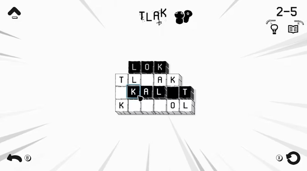 To describe the puzzles, picture a crossword filled with letters, with the player tasked with marking each letter in the puzzle. To do so, they must spell out words, but not just any words – they must use the vocabulary this game gives them. The first of these words is LOK, but they’ll get other words as they progress.