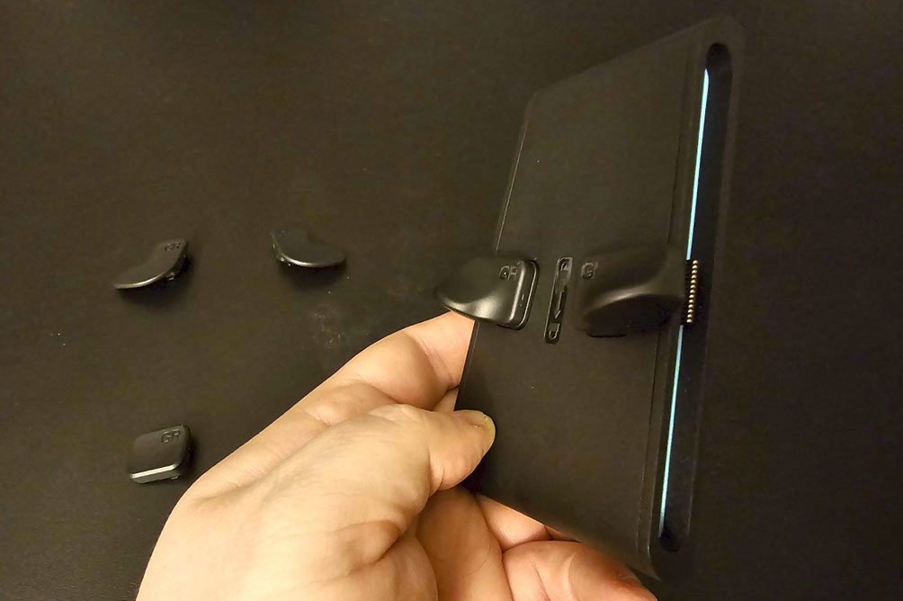 Flipping the NexGrip 3 on its back, we can see the GL and GR buttons, with two slots on each to insert the included button caps that hook into these buttons, sliding down to lock into place. The choices here are larger “trigger” buttons, smaller “direct” buttons, and paddle-style buttons. I personally found the trigger buttons to be far more comfortable, but it’s nice that players have options here. These buttons do stick out slightly to the sides of the grip when Joy-Con 2 controllers aren’t attached, so you may want to pop these buttons out and put them away in the included case when not in use.